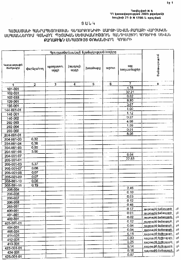 (Հավելվածը լրաց. 15.12.05 N 2312-Ն)