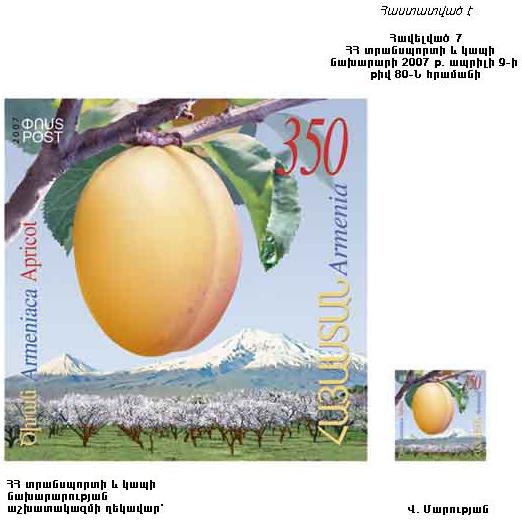 6) Հայկական ծիրանին նվիրված «Ծիրան Armeniaca Apricot» նամականիշը, համաձայն N 7 հավելվածի: