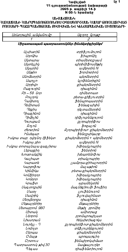 ՀԱՅԱՍՏԱՆԻ ՀԱՆՐԱՊԵՏՈՒԹՅՈՒՆՈՒՄ ՕԳՏԱԳՈՐԾՄԱՆ ՀԱՄԱՐ ԹՈՒՅԼԱՏՐՎԱԾ ԲՈՒՅՍԵՐԻ ՊԱՇՏՊԱՆՈՒԹՅԱՆ ՔԻՄԻԱԿԱՆ ԵՎ ԿԵՆՍԱԲԱՆԱԿԱՆ ՄԻՋՈՑՆԵՐԻ ԱՆՎԱՆԱՑԱՆԿԸ ՀԱՍՏԱՏԵԼՈՒ ՄԱՍԻՆ
