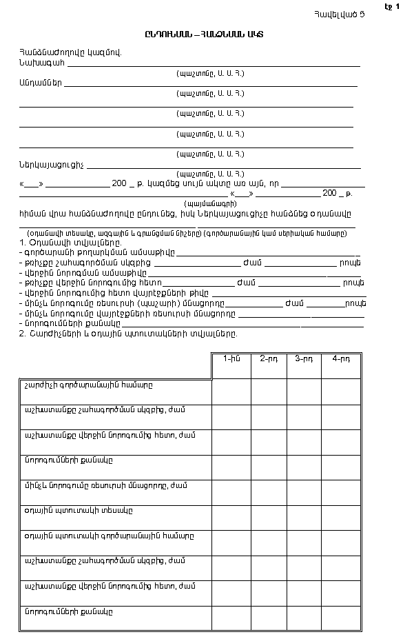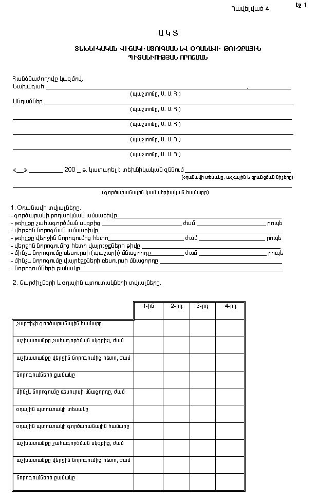 գ) օդանավի թռիչքային պիտանիության որոշման և տեխնիկական վիճակի ստուգման ակտի (Հավելված 4):