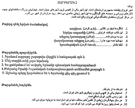 Գրել թելադրություն, որի նպատակն է ստուգել պարսկերենի ուղղագրության իմացությունը: Ուշադրություն դարձնել հետևյալ կետերին.