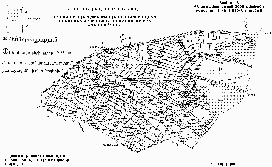1. Հայաստանի Հանրապետության կառավարության 2001 թվականի հոկտեմբերի 17-ի N 988 որոշմամբ հաստատված` Հայաստանի Հանրապետության Արմավիրի մարզի Մրգաշատի գյուղական համայնքի հողերի օգտագործման ժամանակավոր սխեմայում` համաձայն հավելվածի, քաղաքացիների սեփականությունը հանդիսացող` գյուղատնտեսական նշանակության 0.25 հեկտար հողերը փոխադրել բնակավայրերի հողերի կատեգորիա` հասարակական կառուցապատման համար: