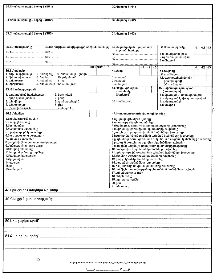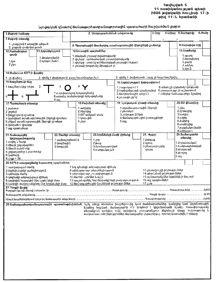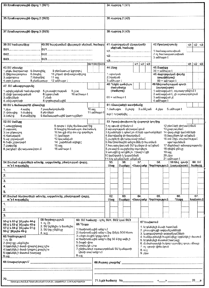ՆՅՈՒԹԱԿԱՆ ՎՆԱՍՈՎ ճանապարհատրանսպորտային պատահարի հաշվառման քարտ