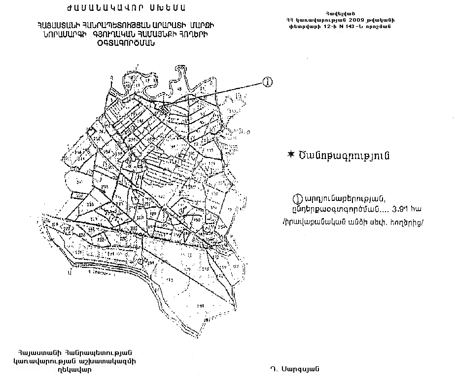 2) սույն կետի 1-ին ենթակետի համաձայն գանձված ֆինանսական միջոցներն ուղղել համայնքի հողերի գոտևորման և օգտագործման սխեմայի կամ գլխավոր հատակագծի կազմմանը:
