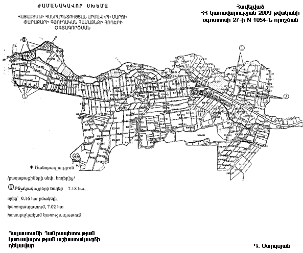 1. Հայաստանի Հանրապետության կառավարության 2005 թվականի սեպտեմբերի 28-ի N 1632-Ն որոշմամբ հաստատված` Հայաստանի Հանրապետության Արմավիրի մարզի Փարաքարի գյուղական համայնքի հողերի օգտագործման ժամանակավոր սխեմայում` համաձայն հավելվածի, փոխադրել`