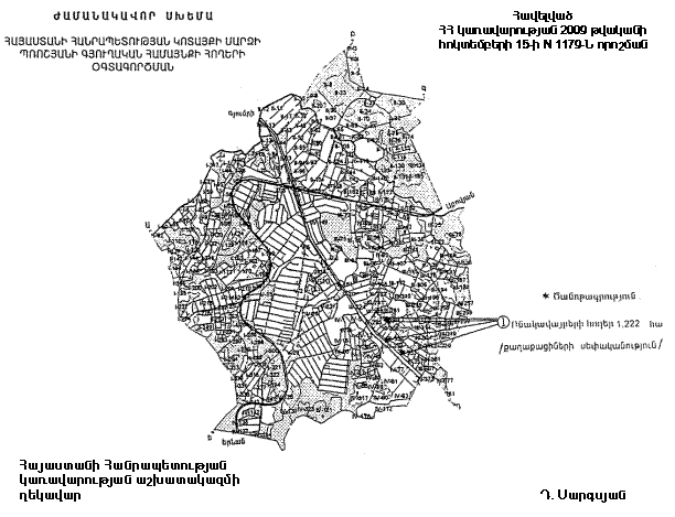 2) սույն կետի 1-ին ենթակետով գանձված ֆինանսական միջոցներն ուղղել համայնքի հողերի գոտևորման և օգտագործման սխեմայի կամ գլխավոր հատակագծի կազմմանը: