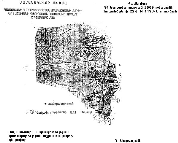 1. Հայաստանի Հանրապետության կառավարության 2007 թվականի սեպտեմբերի 6-ի N 1024-Ն որոշմամբ հաստատված` Հայաստանի Հանրապետության Արագածոտնի մարզի Արտաշավանի գյուղական համայնքի հողերի օգտագործման ժամանակավոր սխեմայում` համաձայն հավելվածի, քաղաքացիների սեփականությունը հանդիսացող գյուղատնտեսական նշանակության 0.12 հեկտար արոտավայրը փոխադրել բնակավայրի հողերի կատեգորիա` հասարակական կառուցապատման համար: