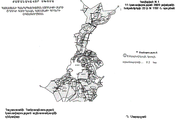 1. Հայաստանի Հանրապետության կառավարության 2005 թվականի մարտի 3-ի N 235-Ն որոշմամբ հաստատված` Հայաստանի Հանրապետության Սյունիքի մարզի Ծղուկի գյուղական համայնքի հողերի օգտագործման ժամանակավոր սխեմայում` համաձայն հավելվածի, համայնքային սեփականություն հանդիսացող` գյուղատնտեսական նշանակության 0.2 հեկտար արոտավայրը փոխադրել էներգետիկայի, կապի, տրանսպորտի, կոմունալ ենթակառուցվածքների օբյեկտների հողերի կատեգորիա` փոքր հզորության հիդրոէլեկտրակայանի և օժանդակ կառույցների շինարարության համար: