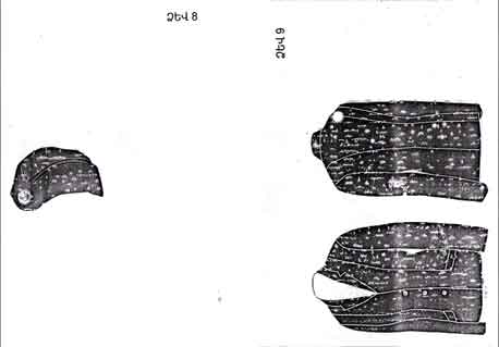 9) կիսաճտքավոր կոշիկ` սև կաշվից, երեսամասը` ամբողջական կամ կտրված քթամասով, երկարացված ձևավոր հետևամասերով, ճտքերի վերնամասերը ծալված աստառի հետ միացված են փափուկ մեջդիրով, լեզվակը միացված է առաջամասին.