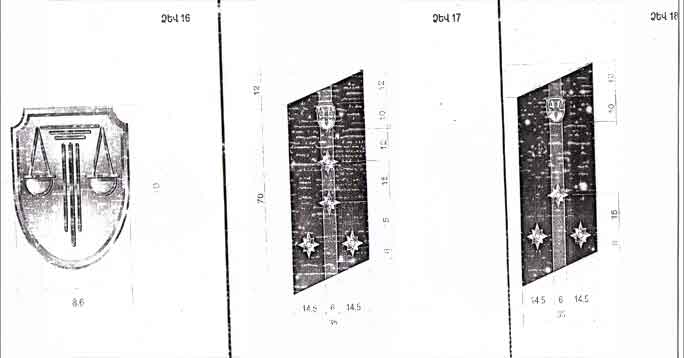 1) արդարադատության կապիտանի լամբակներին ամրացվում է չորս ոսկեզօծ ութանկյուն աստղ` 10 մմ տրամագծով, որոնցից երկուսը` լուսաշերտի երկու կողմում` հավասարաչափ հեռավորությամբ, ներքևի աջ անկյունից ուղղահայաց 6 մմ դեպի վերև հեռավորության վրա, երկուսը` լուսաշերտի վրա, աստղերի կենտրոնները միացնող գծից 15-ական մմ հեռավորության վրա (N 17 ձև).