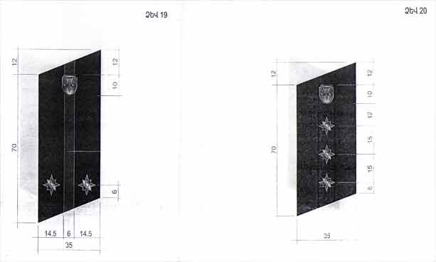 3) արդարադատության լեյտենանտի լամբակներին ամրացվում է երկու ոսկեզօծ ութանկյուն աստղ` 10 մմ տրամագծով, լուսաշերտի երկու կողմում` հավասարաչափ հեռավորությամբ, ներքևի աջ անկյունից ուղղահայաց 6 մմ դեպի վերև հեռավորության վրա (N 19 ձև):
