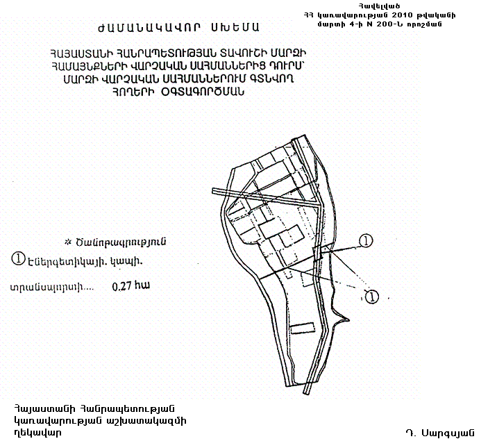ՀԱՅԱՍՏԱՆԻ ՀԱՆՐԱՊԵՏՈՒԹՅԱՆ ՏԱՎՈՒՇԻ ՄԱՐԶԻ ՀԱՄԱՅՆՔՆԵՐԻ ՎԱՐՉԱԿԱՆ ՍԱՀՄԱՆՆԵՐԻՑ ԴՈՒՐՍ` ՄԱՐԶԻ ՎԱՐՉԱԿԱՆ ՍԱՀՄԱՆՆԵՐՈՒՄ ԳՏՆՎՈՂ (ԽԱՇԹԱՌԱԿԻ ԳՅՈՒՂԱԿԱՆ ՀԱՄԱՅՆՔԻ ՆԱԽԿԻՆ ԵՐՐՈՐԴ ՀԱՏՎԱԾԻ) ՀՈՂԵՐԻ ՕԳՏԱԳՈՐԾՄԱՆ ԺԱՄԱՆԱԿԱՎՈՐ ՍԽԵՄԱՆ ՀԱՍՏԱՏԵԼՈՒ ՄԱՍԻՆ