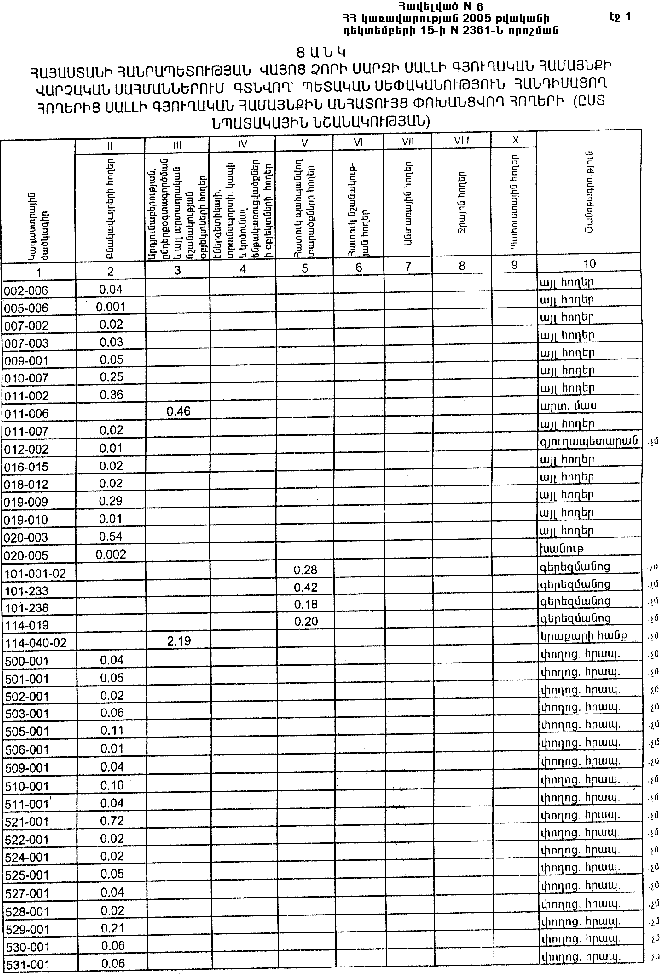 15 դեկտեմբերի 2005 թվականի N 2361-Ն