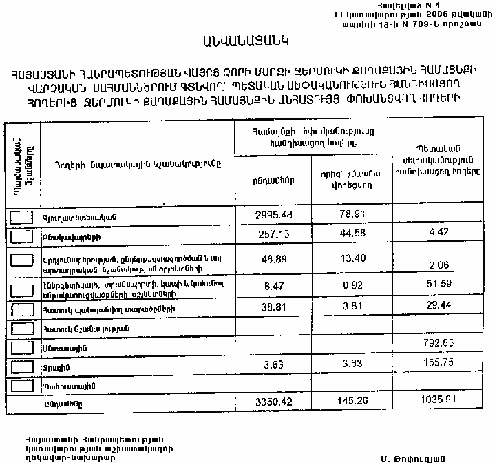 4. Ընդունել ի գիտություն Հայաստանի Հանրապետության Վայոց ձորի մարզի Ջերմուկի քաղաքային համայնքի հողային ֆոնդի առկայության և բաշխման մասին հաշվետվությունը` 2005 թվականի հունվարի 1-ի դրությամբ` համաձայն NN 8 և 9 հավելվածների: