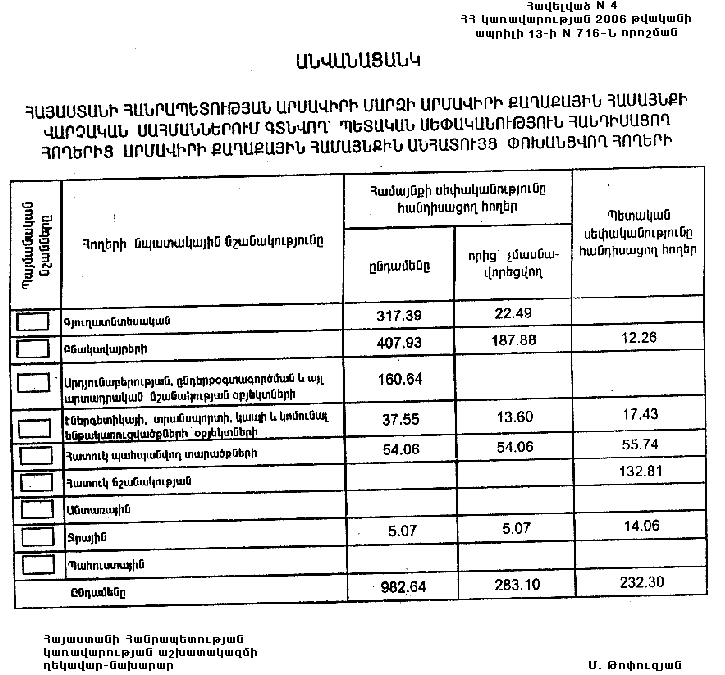 ՀԱՅԱՍՏԱՆԻ ՀԱՆՐԱՊԵՏՈՒԹՅԱՆ ԱՐՄԱՎԻՐԻ ՄԱՐԶԻ ԱՐՄԱՎԻՐԻ ՔԱՂԱՔԱՅԻՆ ՀԱՄԱՅՆՔԻ ՎԱՐՉԱԿԱՆ ՍԱՀՄԱՆՆԵՐՈՒՄ ԳՏՆՎՈՂ` ՊԵՏԱԿԱՆ ՍԵՓԱԿԱՆՈՒԹՅՈՒՆ ՀԱՆԴԻՍԱՑՈՂ ՀՈՂԵՐԻՑ ԱՐՄԱՎԻՐԻ ՔԱՂԱՔԱՅԻՆ ՀԱՄԱՅՆՔԻՆ ԱՆՀԱՏՈՒՅՑ ՓՈԽԱՆՑՎՈՂ ՀՈՂԵՐԻ