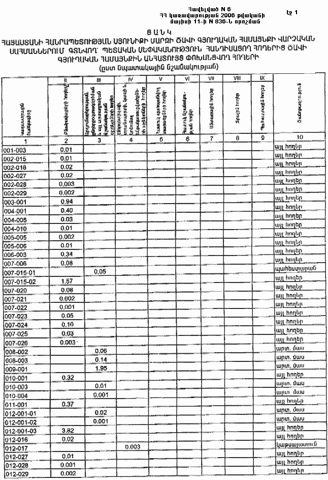 11 մայիսի 2006 թվականի N 836-Ն