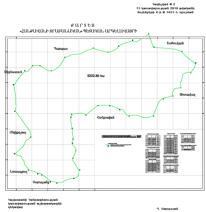 «ՀԱՆՔԱՎԱՆԻ ՋՐԱԲԱՆԱԿԱՆ» ՊԵՏԱԿԱՆ ԱՐԳԵԼԱՎԱՅՐԻ ՍԱՀՄԱՆՆԵՐԻ ՆԿԱՐԱԳԻՐԸ, ՀԱՏԱԿԱԳԻԾԸ, ՏԱՐԱԾՔԻ ՉԱՓԸ ՀԱՍՏԱՏԵԼՈՒ ԵՎ ՀՈՂԵՐԻ ՆՊԱՏԱԿԱՅԻՆ ՆՇԱՆԱԿՈՒԹՅՈՒՆԸ ՓՈՓՈԽԵԼՈՒ ՄԱՍԻՆ