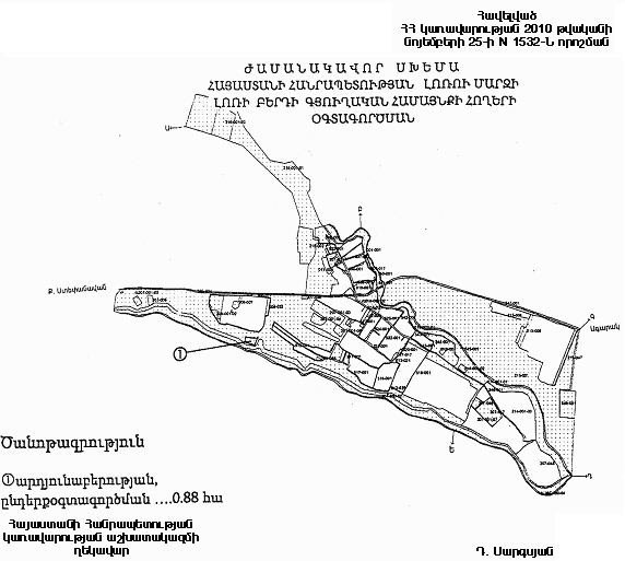 1. Հայաստանի Հանրապետության կառավարության 2008 թվականի օգոստոսի 14-ի N 900-Ն որոշմամբ հաստատված` Հայաստանի Հանրապետության Լոռու մարզի Լոռի Բերդի գյուղական համայնքի հողերի օգտագործման ժամանակավոր սխեմայում` համաձայն հավելվածի, համայնքային սեփականություն հանդիսացող գյուղատնտեսական նշանակության 0.88 հեկտար արոտավայրը փոխադրել արդյունաբերության, ընդերքօգտագործման և այլ արտադրական նշանակության օբյեկտների հողերի կատեգորիա` Հայաստանի Հանրապետության օրենսդրությամբ սահմանված կարգով դոլերիտային բազալտի արդյունահանման համար: