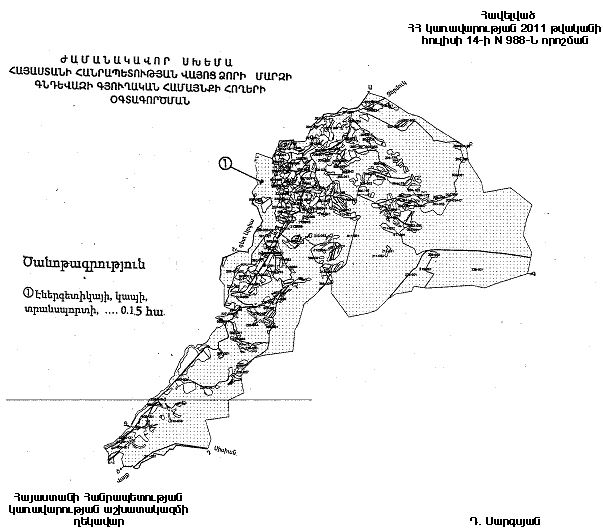 1. Հայաստանի Հանրապետության կառավարության 2002 թվականի մայիսի 16-ի N 575 որոշմամբ հաստատված` Հայաստանի Հանրապետության Վայոց ձորի մարզի Գնդեվազի գյուղական համայնքի հողերի օգտագործման ժամանակավոր սխեմայում` համաձայն հավելվածի, իրավաբանական անձի սեփականությունը հանդիսացող գյուղատնտեսական նշանակության արոտավայրերից 0.15 հեկտարը փոխադրել էներգետիկայի, կապի, տրանսպորտի, կոմունալ ենթակառուցվածքների օբյեկտների հողերի կատեգորիա` Հայաստանի Հանրապետության օրենսդրությամբ սահմանված կարգով փոքր հիդրոէլեկտրակայանի և օժանդակ կառույցների շինարարության համար: