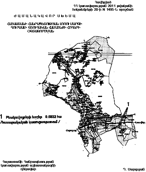 1. Հայաստանի Հանրապետության կառավարության 2002 թվականի սեպտեմբերի 12-ի N 1443-Ն որոշմամբ հաստատված` Հայաստանի Հանրապետության Լոռու մարզի Ղուրսալի գյուղական համայնքի հողերի օգտագործման ժամանակավոր սխեմայում` համաձայն հավելվածի, համայնքի վարչական սահմաններում գտնվող՝ գյուղատնտեսական նշանակության հողերից 0.5932 հեկտարը, այդ թվում՝ համայնքային սեփականություն հանդիսացող այլ հողատեսքերից 0.0232 հեկտար, քաղաքացիների սեփականությունը հանդիսացող հողերից 0.57 հեկտար, որից՝ 0.16 հեկտար արոտավայր, 0.41 հեկտար այլ հողատեսք, փոխադրել բնակավայրերի հողերի կատեգորիա` Հայաստանի Հանրապետության օրենսդրությամբ սահմանված կարգով հասարակական կառուցապատման համար: