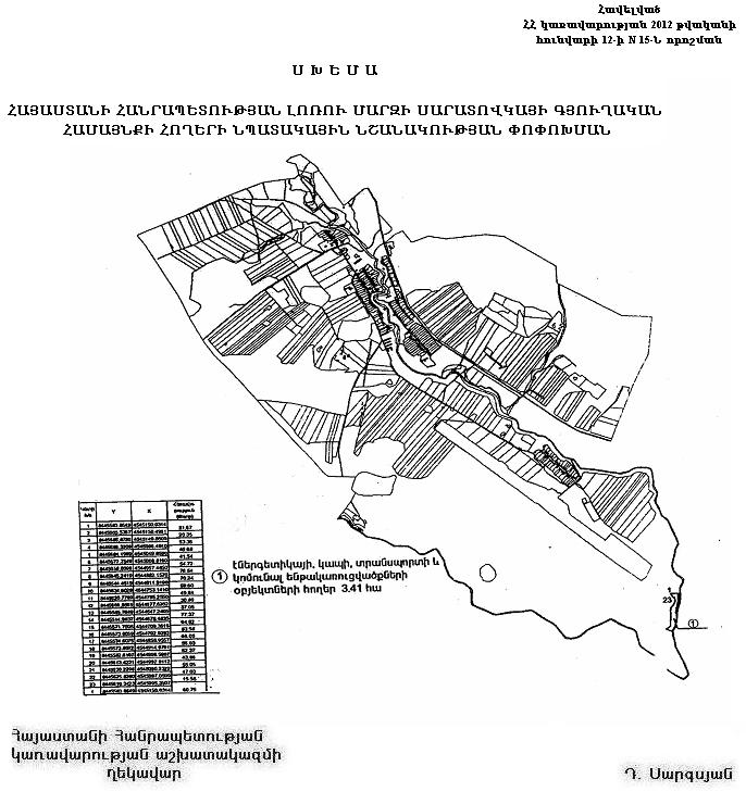 ՀԱՅԱՍՏԱՆԻ ՀԱՆՐԱՊԵՏՈՒԹՅԱՆ ԼՈՌՈՒ ՄԱՐԶԻ ՍԱՐԱՏՈՎԿԱՅԻ ԳՅՈՒՂԱԿԱՆ ՀԱՄԱՅՆՔԻ ՀՈՂԵՐԻ ՆՊԱՏԱԿԱՅԻՆ ՆՇԱՆԱԿՈՒԹՅԱՆ ՓՈՓՈԽՄԱՆ