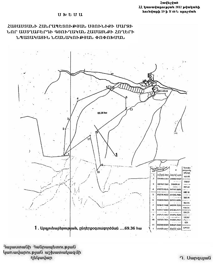 ՀԱՅԱՍՏԱՆԻ ՀԱՆՐԱՊԵՏՈՒԹՅԱՆ ՍՅՈՒՆԻՔԻ ՄԱՐԶԻ ՆՈՐ ԱՍՏՂԱԲԵՐԴԻ ԳՅՈՒՂԱԿԱՆ ՀԱՄԱՅՆՔԻ ՀՈՂԵՐԻ ՆՊԱՏԱԿԱՅԻՆ ՆՇԱՆԱԿՈՒԹՅԱՆ ՓՈՓՈԽՄԱՆ