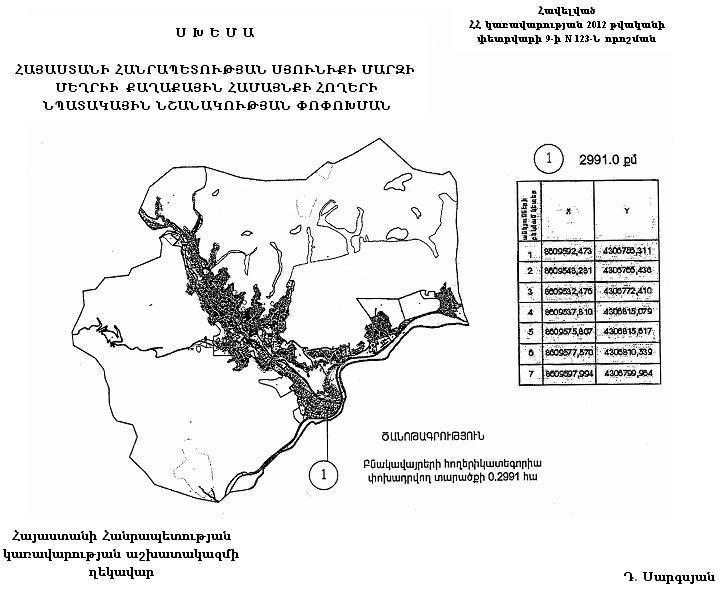 ՀԱՅԱՍՏԱՆԻ ՀԱՆՐԱՊԵՏՈՒԹՅԱՆ ՍՅՈՒՆՒՔԻ ՄԱՐԶԻ ՄԵՂՐԻԻ ՔԱՂԱՔԱՅԻՆ ՀԱՄԱՅՆՔԻ ՀՈՂԵՐԻ ՆՊԱՏԱԿԱՅԻՆ ՆՇԱՆԱԿՈՒԹՅԱՆ ՓՈՓՈԽՄԱՆ
