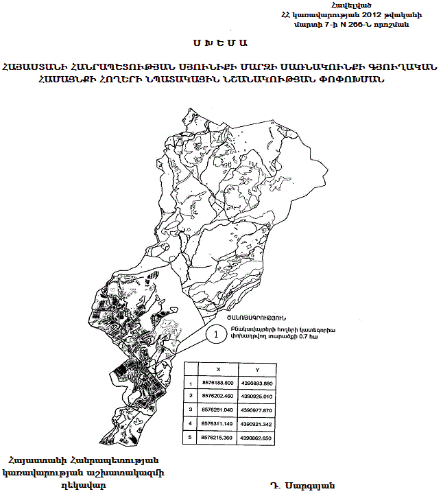 ՀԱՅԱՍՏԱՆԻ ՀԱՆՐԱՊԵՏՈՒԹՅԱՆ ՍՅՈՒՆԻՔԻ ՄԱՐԶԻ ՍԱՌՆԱԿՈՒՆՔԻ ԳՅՈՒՂԱԿԱՆ ՀԱՄԱՅՆՔԻ ՀՈՂԵՐԻ ՆՊԱՏԱԿԱՅԻՆ ՆՇԱՆԱԿՈՒԹՅԱՆ ՓՈՓՈԽՄԱՆ