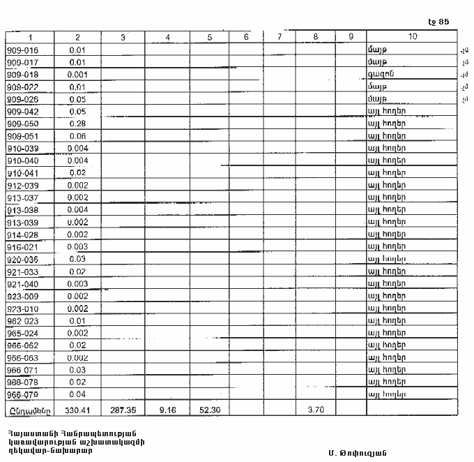 ԸՆԴԱՄԵՆԸ` ՀՈՂԵՐ (1+2+3+4+5+6+7+8+9) |