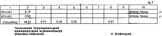 7. Հայաստանի Հանրապետության Գեղարքունիքի մարզպետին` Հայաստանի Հանրապետության կառավարության 2000 թվականի հոկտեմբերի 23-ի N 656 որոշմամբ սահմանված կարգով` սկզբնական հաշվառման տվյալների հիման վրա ապահովել մարզի տարածքում ընթացիկ հաշվառման աշխատանքների իրականացումը: