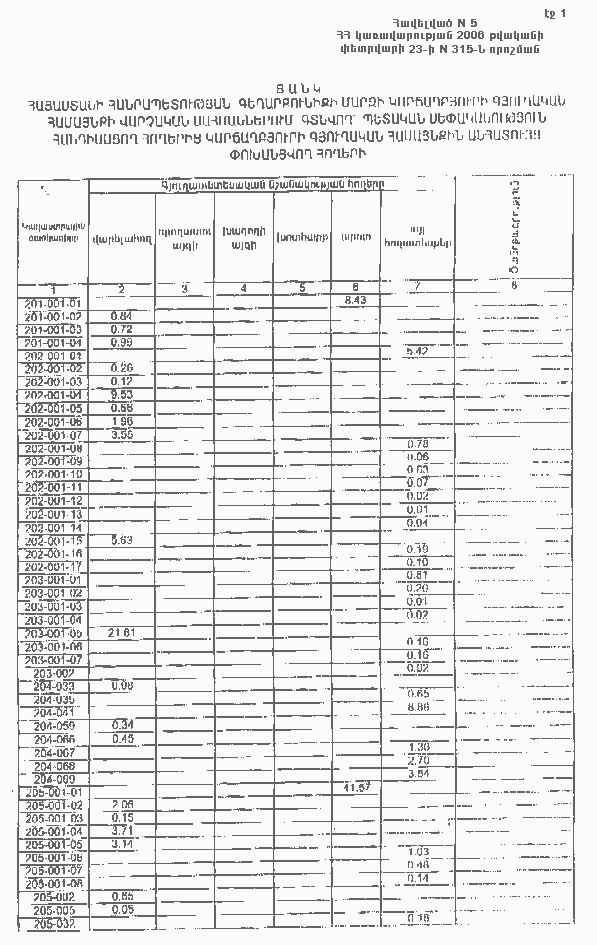 23 փետրվարի 2006 թվականի N 315-Ն
