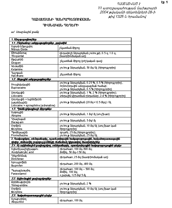 1. Հաստատել Հայաստանի Հանրապետության հիմնական դեղերի ցանկը՝ համաձայն հավելվածի: