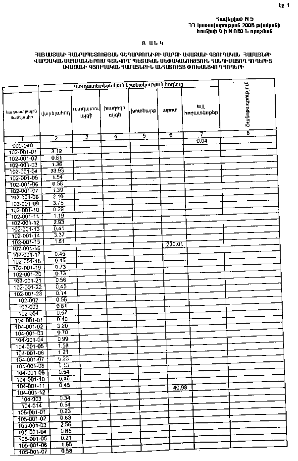 9 հունիսի 2005 թվականի N 850-Ն