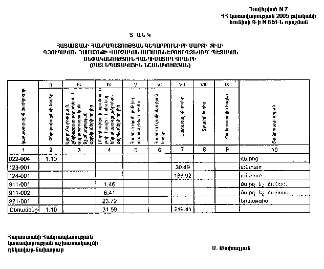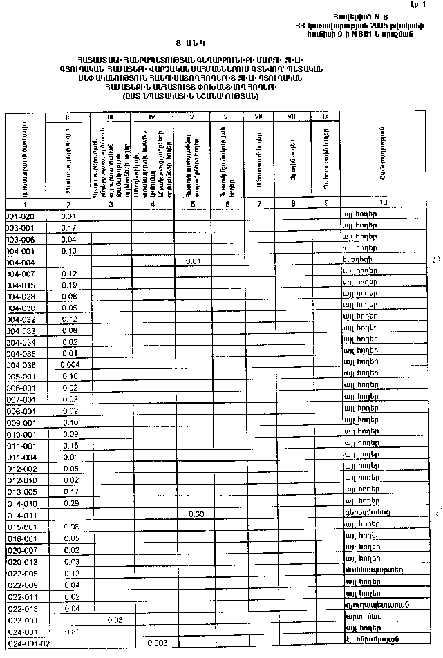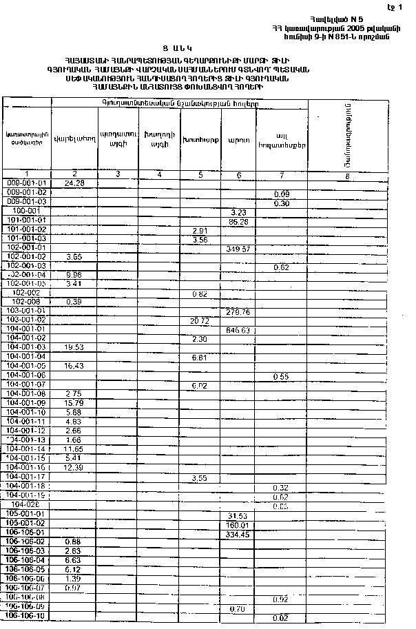 9 հունիսի 2005 թվականի N 851-Ն