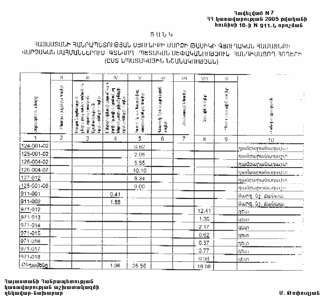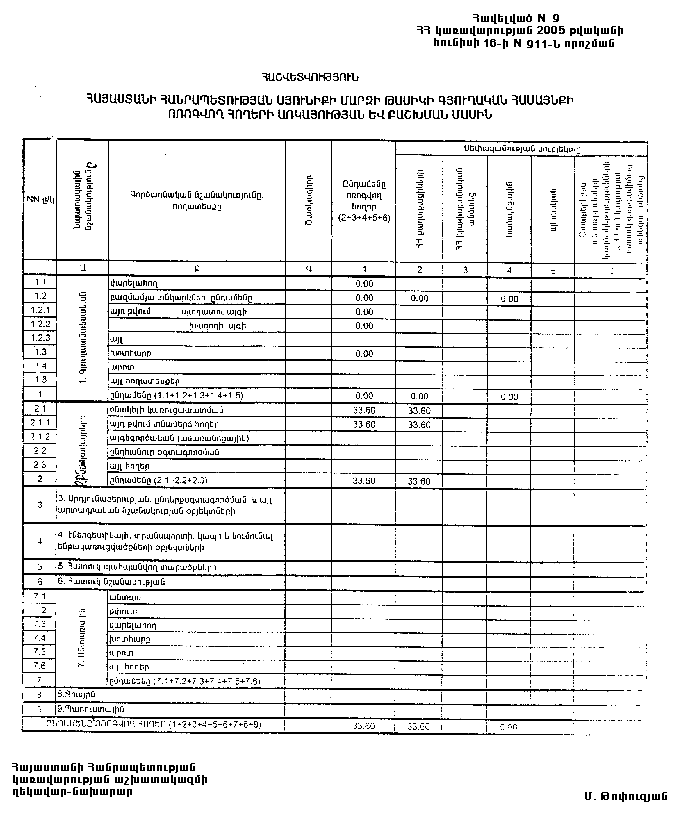 4. Ընդունել ի գիտություն Հայաստանի Հանրապետության Սյունիքի մարզի Թասիկի գյուղական համայնքի հողային ֆոնդի առկայության և բաշխման մասին հաշվետվությունը՝ 2005 թվականի հունվարի 1-ի դրությամբ՝ համաձայն NN 8 և 9 հավելվածների: