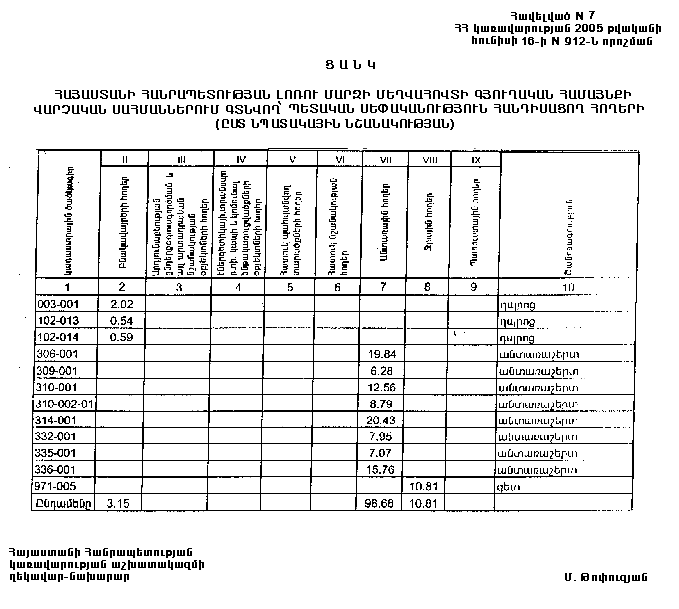 ՀԱՅԱՍՏԱՆԻ ՀԱՆՐԱՊԵՏՈՒԹՅԱՆ ԼՈՌՈՒ ՄԱՐԶԻ ՄԵՂՎԱՀՈՎՏԻ ԳՅՈՒՂԱԿԱՆ ՀԱՄԱՅՆՔԻ ՎԱՐՉԱԿԱՆ ՍԱՀՄԱՆՆԵՐՈՒՄ ԳՏՆՎՈՂ` ՊԵՏԱԿԱՆ ՍԵՓԱԿԱՆՈՒԹՅՈՒՆ ՀԱՆԴԻՍԱՑՈՂ ՀՈՂԵՐԻՑ ՄԵՂՎԱՀՈՎՏԻ ԳՅՈՒՂԱԿԱՆ ՀԱՄԱՅՆՔԻՆ ԱՆՀԱՏՈՒՅՑ ՓՈԽԱՆՑՎՈՂ ՀՈՂԵՐԻ (ԸՍՏ ՆՊԱՏԱԿԱՅԻՆ ՆՇԱՆԱԿՈՒԹՅԱՆ)
