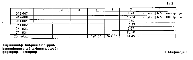 7. Հայաստանի Հանրապետության Լոռու մարզպետին` Հայաստանի Հանրապետության կառավարության 2000 թվականի հոկտեմբերի 23-ի N 656 որոշմամբ սահմանված կարգով` սկզբնական հաշվառման տվյալների հիման վրա ապահովել մարզի տարածքում ընթացիկ հաշվառման աշխատանքների իրականացումը:
