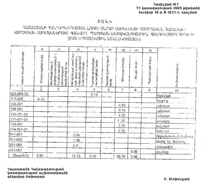ՀԱՅԱՍՏԱՆԻ ՀԱՆՐԱՊԵՏՈՒԹՅԱՆ ԼՈՌՈՒ ՄԱՐԶԻ ՍԱՐԱԼԱՆՋԻ ԳՅՈՒՂԱԿԱՆ ՀԱՄԱՅՆՔԻ ՎԱՐՉԱԿԱՆ ՍԱՀՄԱՆՆԵՐՈՒՄ ԳՏՆՎՈՂ` ՊԵՏԱԿԱՆ ՍԵՓԱԿԱՆՈՒԹՅՈՒՆ ՀԱՆԴԻՍԱՑՈՂ ՀՈՂԵՐԻՑ ՍԱՐԱԼԱՆՋԻ ԳՅՈՒՂԱԿԱՆ ՀԱՄԱՅՆՔԻՆ ԱՆՀԱՏՈՒՅՑ ՓՈԽԱՆՑՎՈՂ ՀՈՂԵՐԻ (ԸՍՏ ՆՊԱՏԱԿԱՅԻՆ ՆՇԱՆԱԿՈՒԹՅԱՆ)