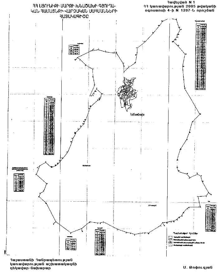 1) Խնածախի գյուղական համայնքի վարչական սահմանների նկարագիրը` համաձայն NN 1 և 11 հավելվածների,