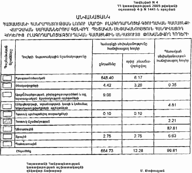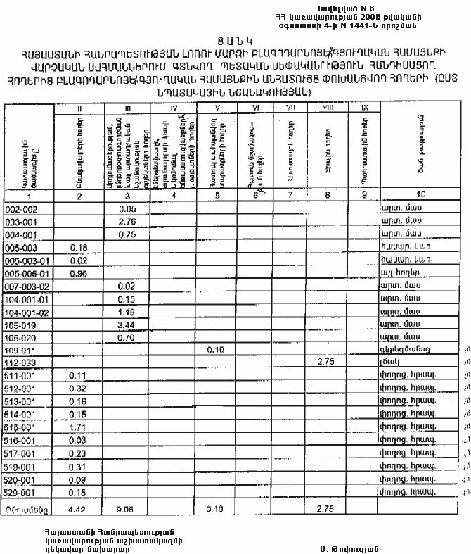 4 օգոստոսի 2005 թվականի N 1441-Ն