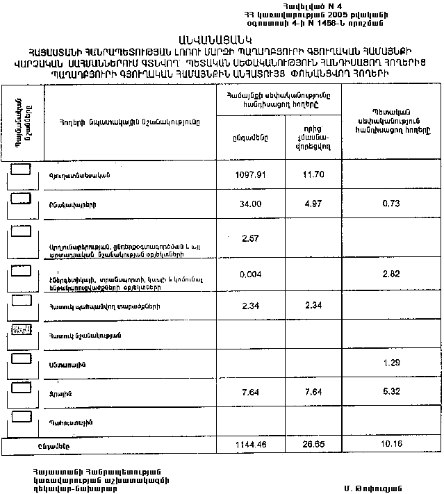 4 օգոստոսի 2005 թվականի N 1458-Ն
