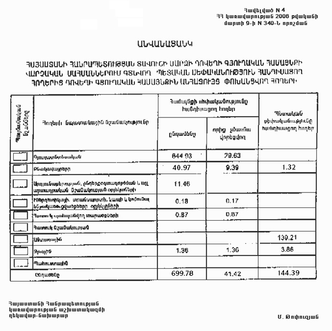 9 մարտի 2006 թվականի N 340-Ն