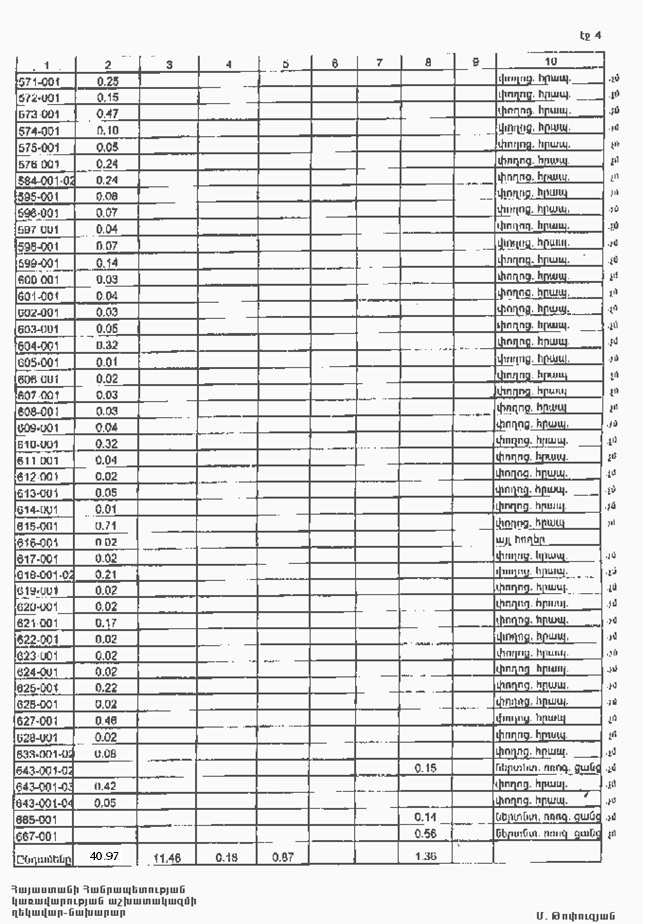 4. Ընդունել ի գիտություն Հայաստանի Հանրապետության Տավուշի մարզի Դովեղի գյուղական համայնքի հողային ֆոնդի առկայության և բաշխման մասին հաշվետվությունը՝ 2005 թվականի հունվարի 1-ի դրությամբ՝ համաձայն NN 8 և 9 հավելվածների: