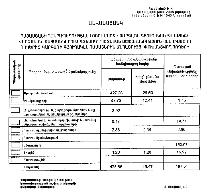 4. Ընդունել ի գիտություն Հայաստանի Հանրապետության Լոռու մարզի Գարգառի գյուղական համայնքի հողային ֆոնդի առկայության և բաշխման մասին հաշվետվությունը` 2005 թվականի հունվարի 1-ի դրությամբ` համաձայն NN 8 և 9 հավելվածների: