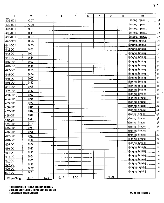 7. Հայաստանի Հանրապետության Լոռու մարզպետին` Հայաստանի Հանրապետության կառավարության 2000 թվականի հոկտեմբերի 23-ի N 656 որոշմամբ սահմանված կարգով` սկզբնական հաշվառման տվյալների հիման վրա ապահովել մարզի տարածքում ընթացիկ հաշվառման աշխատանքների իրականացումը:
