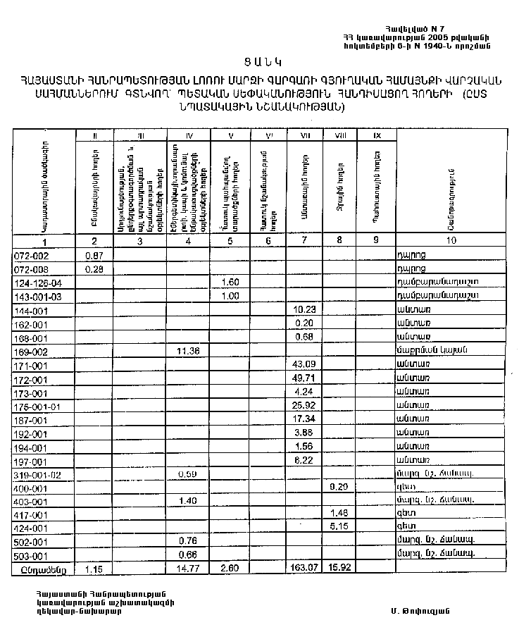 բ) Հայաստանի Հանրապետության Լոռու մարզի Գարգառի գյուղական համայնքի վարչական սահմաններում գտնվող հողերից 197.51 հեկտարը համարվում է պետական սեփականություն` համաձայն N 7 հավելվածի: