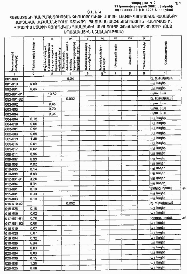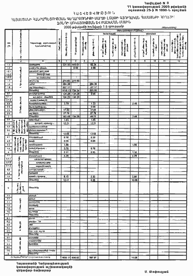 25 օգոստոսի 2005 թվականի N 1698-Ն