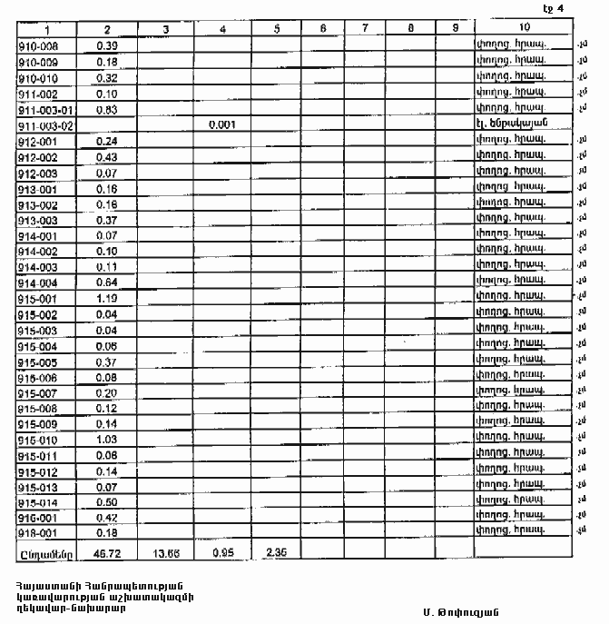 4. Ընդունել ի գիտություն Հայաստանի Հանրապետության Գեղարքունիքի մարզի Լճափի գյուղական համայնքի հողային ֆոնդի առկայության և բաշխման մասին հաշվետվությունը` 2005 թվականի հունվարի 1-ի դրությամբ` համաձայն NN 8 և 9 հավելվածների: