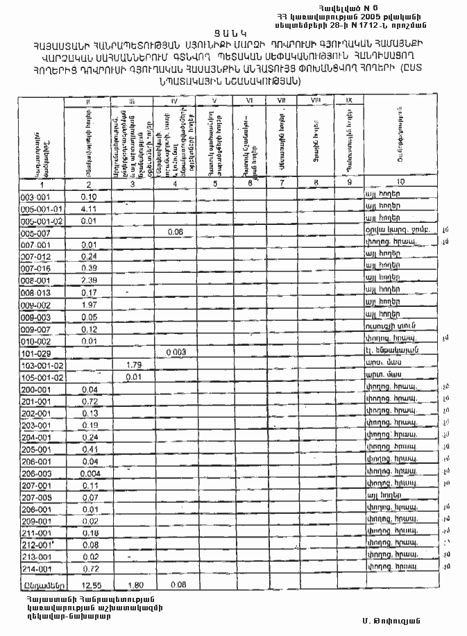 28 սեպտեմբերի 2005 թվականի N 1712-Ն