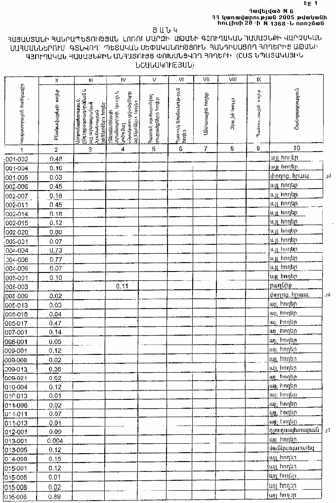 ՀԱՅԱՍՏԱՆԻ ՀԱՆՐԱՊԵՏՈՒԹՅԱՆ ԼՈՌՈՒ ՄԱՐԶԻ ԱԹԱՆԻ ԳՅՈՒՂԱԿԱՆ ՀԱՄԱՅՆՔԻ ՎԱՐՉԱԿԱՆ ՍԱՀՄԱՆՆԵՐՈՒՄ ԳՏՆՎՈՂ` ՊԵՏԱԿԱՆ ՍԵՓԱԿԱՆՈՒԹՅՈՒՆ ՀԱՆԴԻՍԱՑՈՂ ՀՈՂԵՐԻՑ ԱԹԱՆԻ ԳՅՈՒՂԱԿԱՆ ՀԱՄԱՅՆՔԻՆ ԱՆՀԱՏՈՒՅՑ ՓՈԽԱՆՑՎՈՂ ՀՈՂԵՐԻ (ԸՍՏ ՆՊԱՏԱԿԱՅԻՆ ՆՇԱՆԱԿՈՒԹՅԱՆ)
